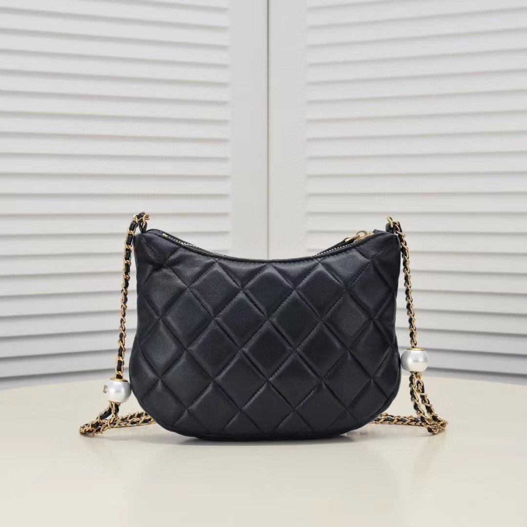 CHANEL 24S pearl-adjustable buckle hobo bag. Delicate and plump sheepskin continues the previous classic shape. The pearls are changed. The chain has a double-pearl adjustable design, which is more novel and unique. There is also a small double C embedded on the pearl ball. It is simple, atmospheric and very delicate! Size: 23.5*17*6 cm. Model number: 9038.