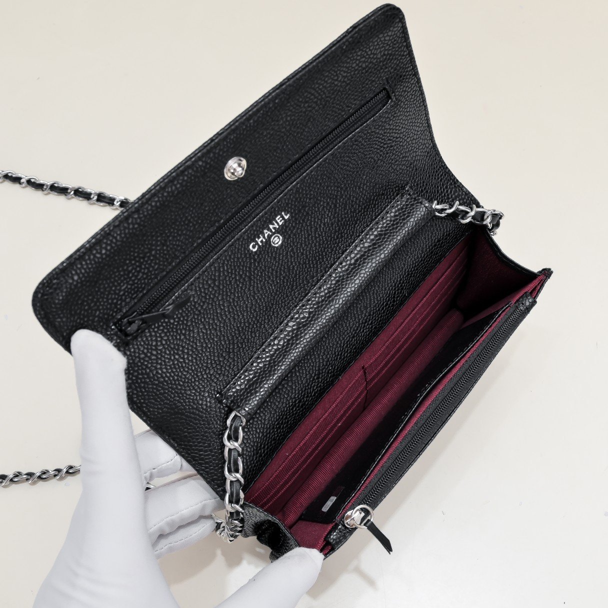 CHANEL woc caviar classic fortune bag 📢, with original hardware. 🔥 It can be carried crossbody or on one shoulder. 💓 The chain can be put inside the bag and used as a clutch. 💪 It looks very elegant when worn. Although it is small, it can hold a lot. There are card slots, zipper compartments, and coin compartments inside the bag. Small and practical. 💓 Size: 19.12.5 Model: 33814.