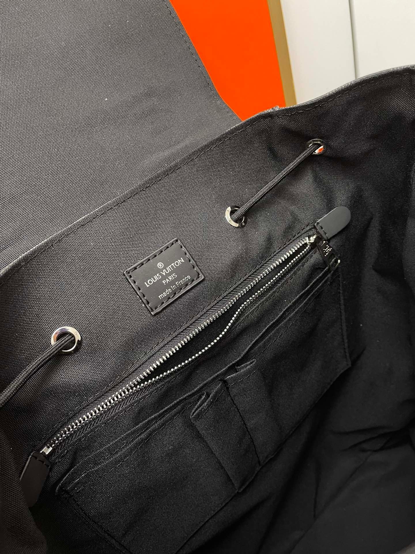 With black leather trim, reinterpret the spirit of the hiking backpack. Gray and black tones are matched with silver snaps and zippers. Equipped with multiple pockets and a leather flap with snaps to ensure the safety of items inside the bag. Detailed characteristics: 41.0 x 48.0 x 13.0 cm.