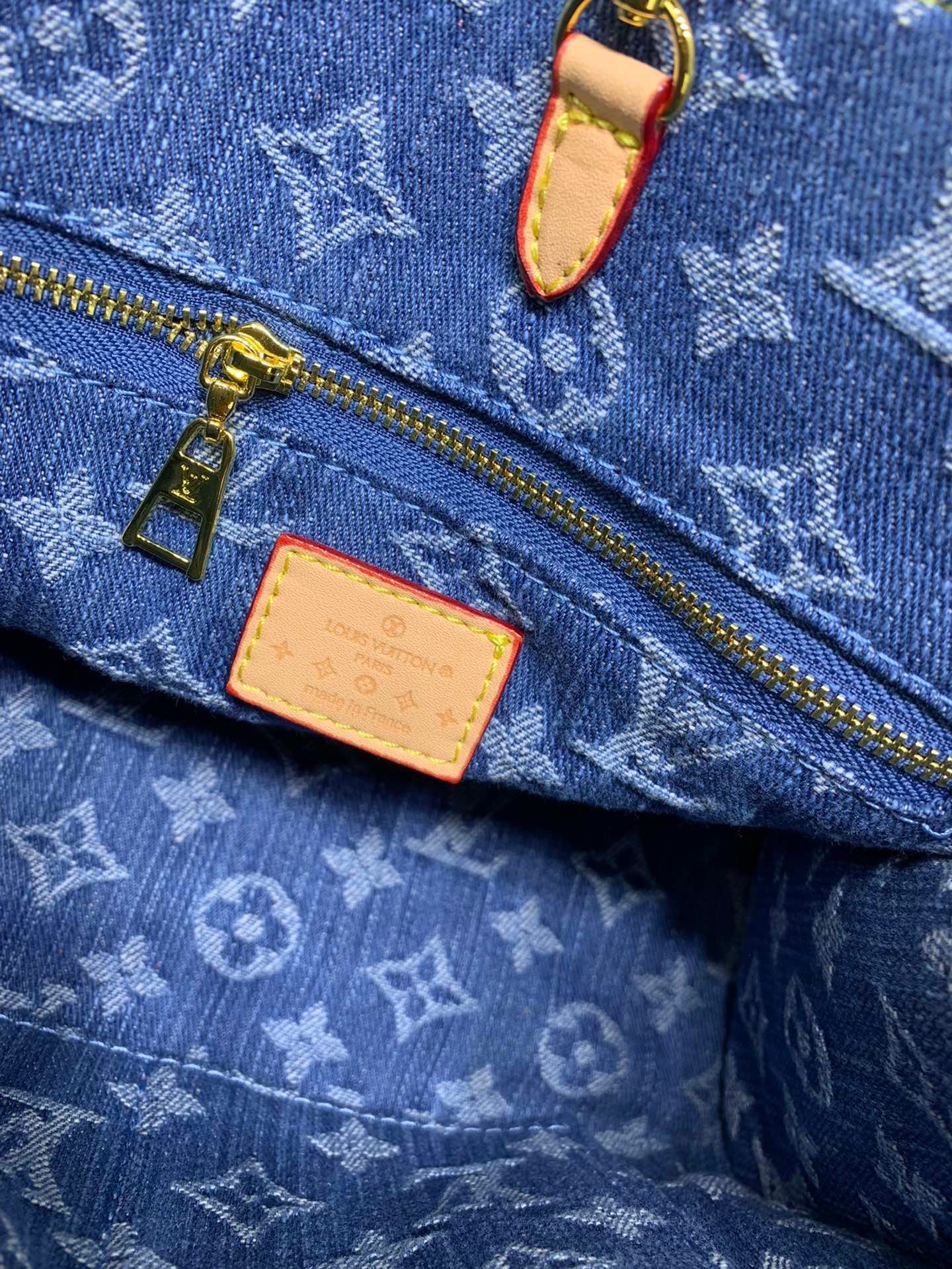 This denim jacquard OnTheGo PM handbag combines Monogram and Monogram Reverse canvas, and is embellished with Monogram Giant patterns. The Toron handle and the jacquard woven shoulder strap decorated with brand inscriptions create a visual contrast. The detachable coin purse is suitable for storing change or small delicate items. With both stylish charm and diverse functions, it becomes an excellent daily companion. 25.0 x 19.0 x 11.5 cm.