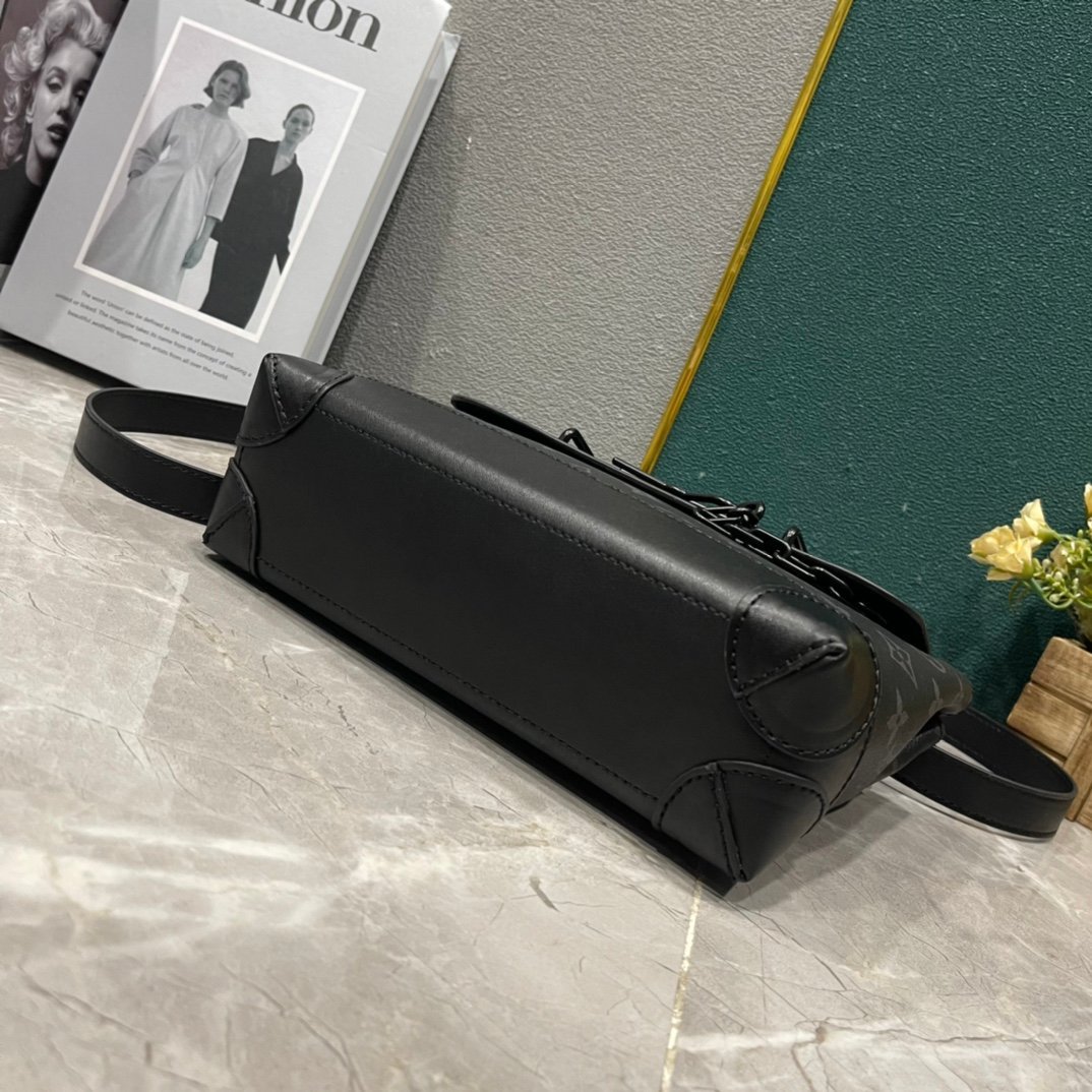 Beautifully styled. Soft Monogram Taurillon leather complements classic elements such as Steamer style chains. Features detachable shoulder straps for easy carrying. Plenty of storage space in zipper compartment with front pocket flap and magnet lock size 25-9-10 cm