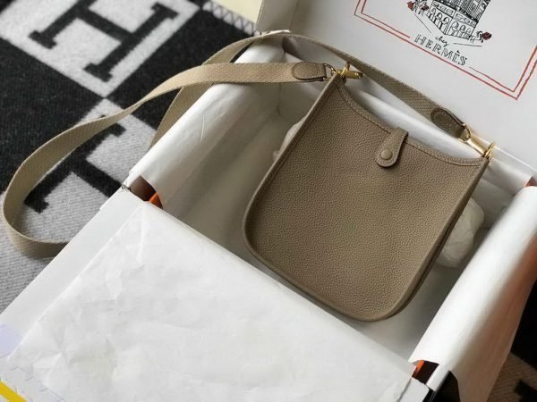 Hermes Evelyne Bag Designer Hermes Mini Crossbody Bag 20395 Gold Buckle Gray on sale now.