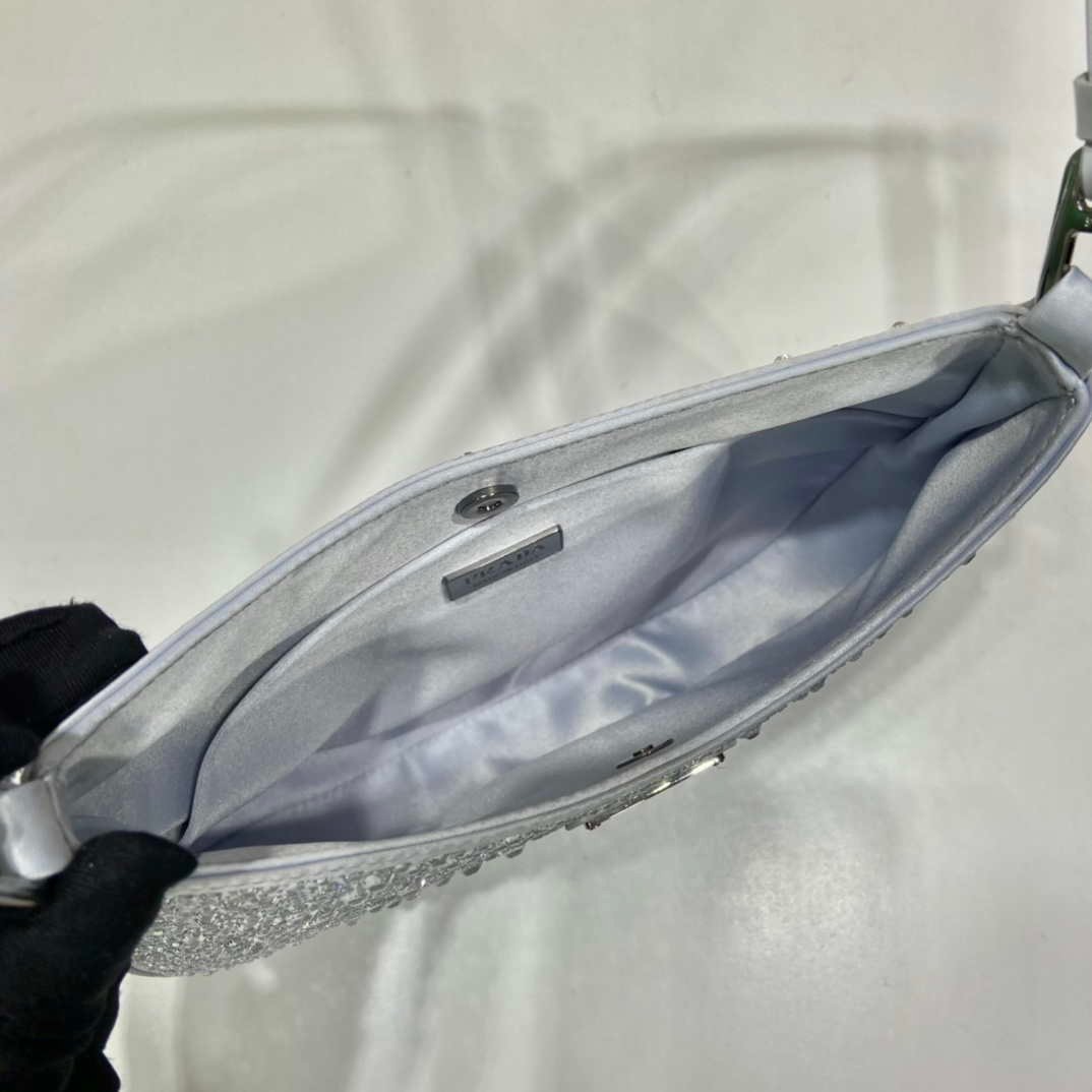 Replica Prada 1BC169 Prada Cleo satin bag with appliqués White