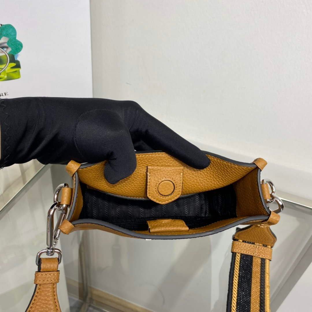 Prada 1BH191 Leather mini shoulder bag tan on sale now.