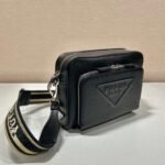 This refined and functional shoulder bag stands out for its sleek allure with sports references. Made of Saffiano leather. an iconic Prada material. the accessory stands out for its many pockets and the adjustable embroidered and logo-print shoulder strap. A new interpretation of the emblematic triangle logo stands out on the front. creating a harmonious three-dimensional effect.