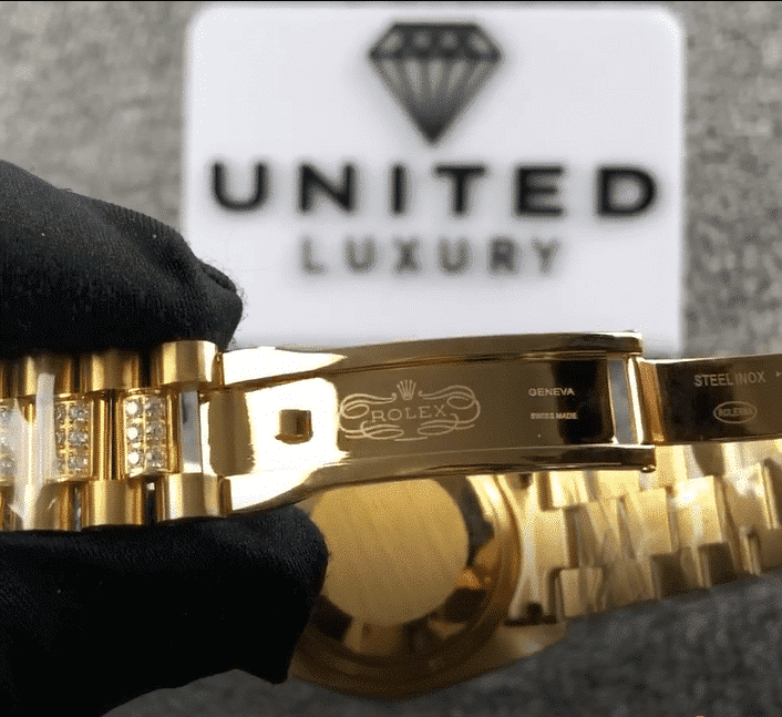 When you envision this watch. feel the robust embrace of its bracelet. also made of 904L stainless steel. polished to perfection. and finished in a matching yellow gold color. The oyster-type design. with its adjustable links and fold clasp. ensures that the watch sits comfortably on your wrist. a seamless integration of luxury and practicality. The intricate details of the automatic caliber 3155 movement. offering a commanding 60-hour power reserve and adhering to stringent COSC certification limits. assure you of unparalleled accuracy and dependability. Know that this remarkable watch is water-resistant up to 30 meters. adding a layer of protection that lets you enjoy this luxury in various environments.