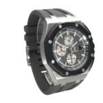 The Royal Oak Chrono Novelty Replica is a striking watch from Audemars Piguet’s Royal Oak Offshore family. It has a model number of 26401RO.OO.A002CA.01 and is powered by an automatic AP 3126 / 3840 movement with a 60-hour power reserve and a precision of (-3/+3 sec/day) within COSC certification limits. The case is made of 904L stainless steel and has a black bezel. a sapphire crystal. and a 44.00 mm size and 14.14mm thickness. The bracelet is made of rubber and is adjustable for all sizes. with a 904L stainless steel pin clasp in grey.