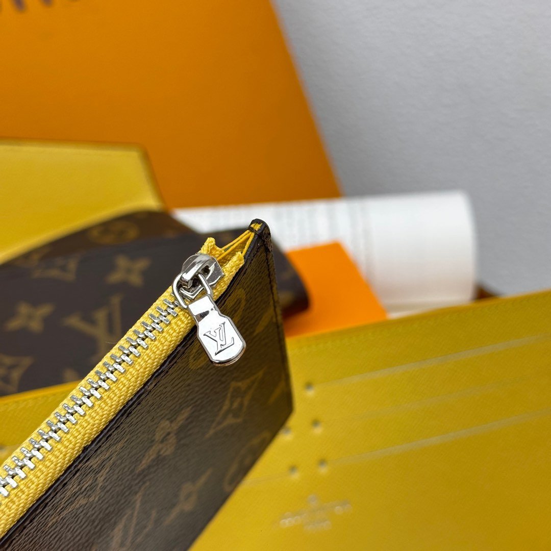 M12403 new model [KIRIGAMI ORGANIZER wallet]. The Kirigami Organizer wallet is named after Japanese kirigami art. Monogram coated canvas creates a smooth configuration, and the grained leather lining adds bright colors. It is equipped with a detachable zipper bag and card interlayer patch pocket for convenient storage of important documents.