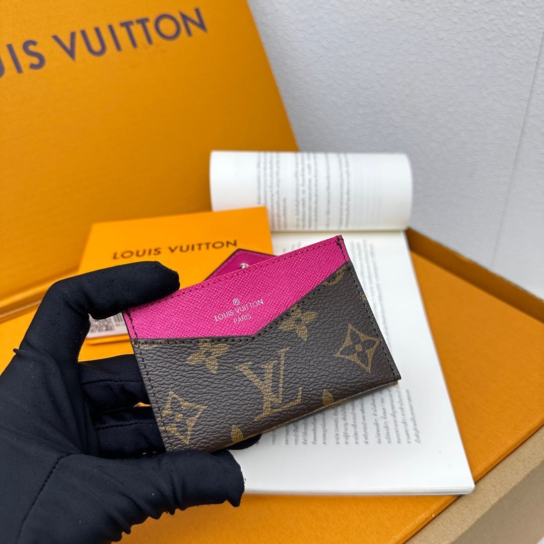 M12884 This card holder renews the envelope-style configuration of the original Kirigami Pochette Ms clutch bag, adding a new idea to the Colormania collection. The Monogram canvas combines a bright leather lining and a glossy snap-on, and the 2-in-1 compartment can be removed for use alone.
