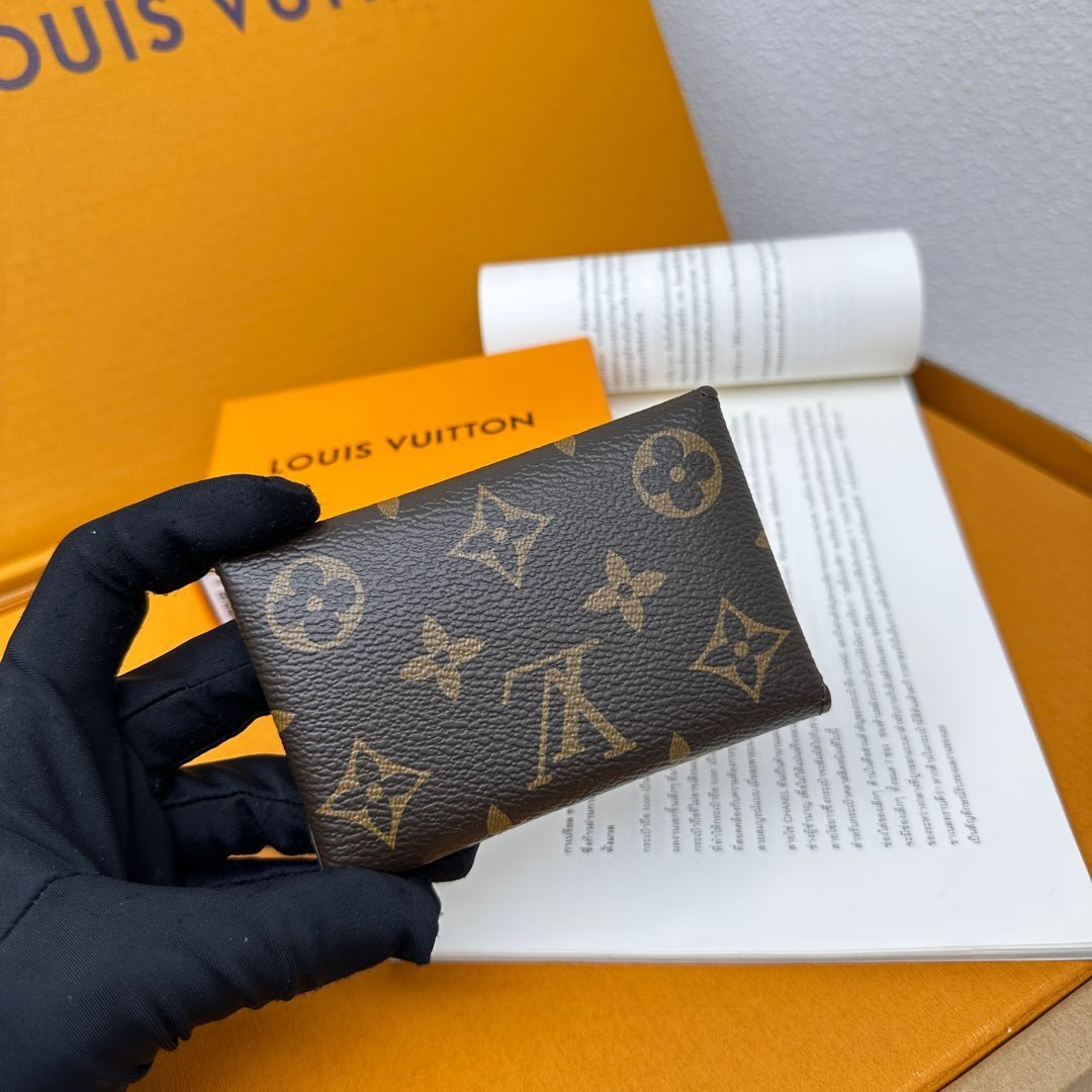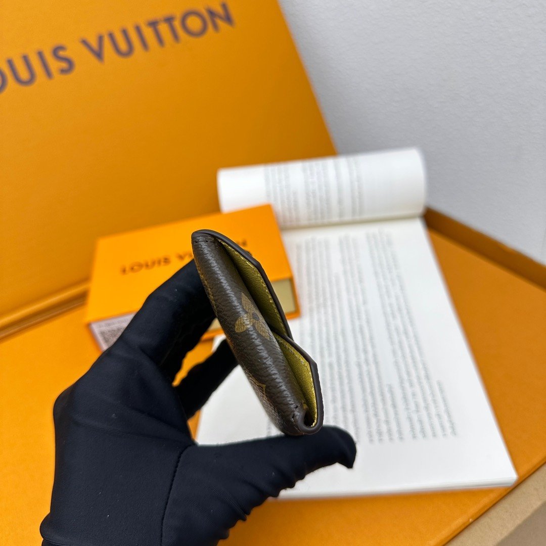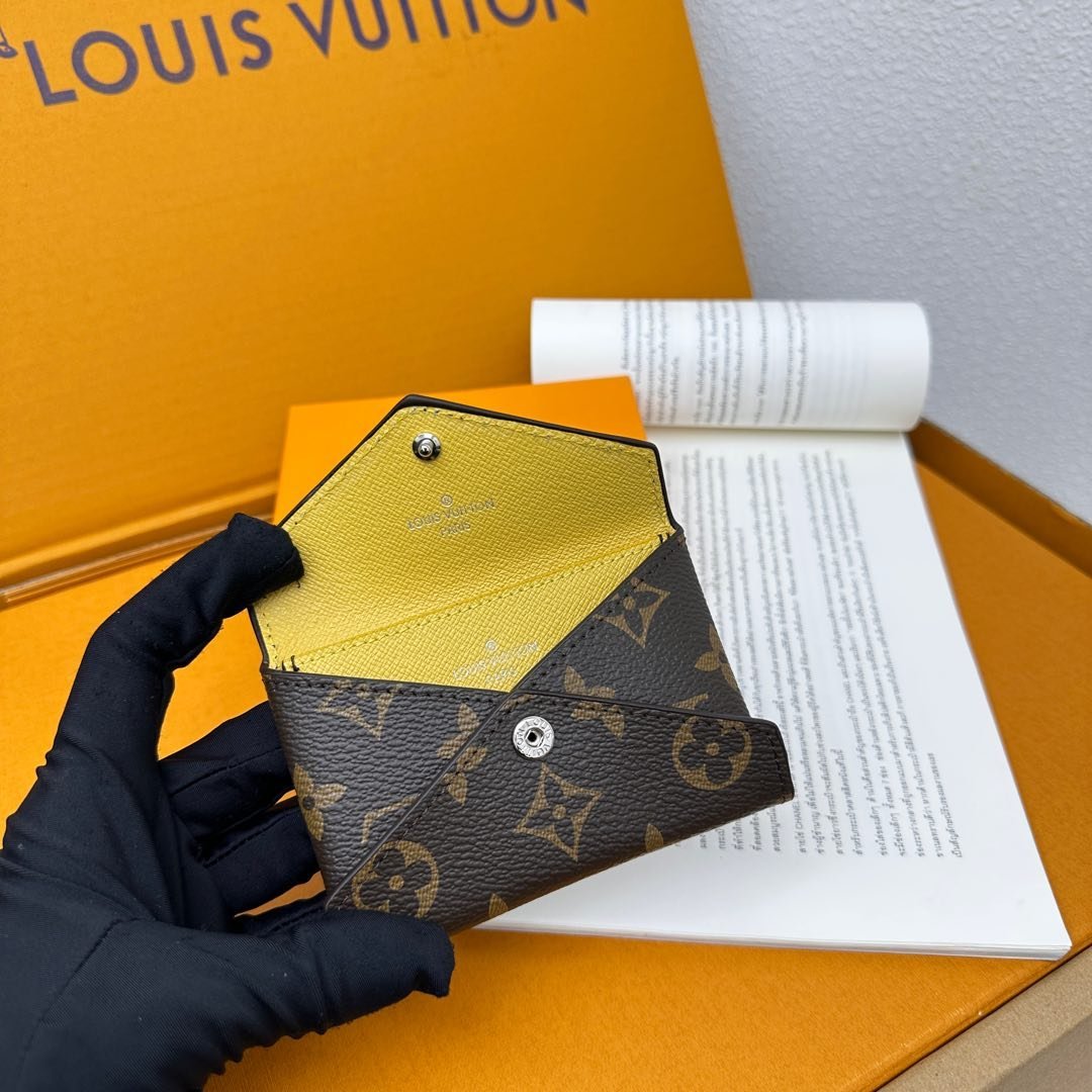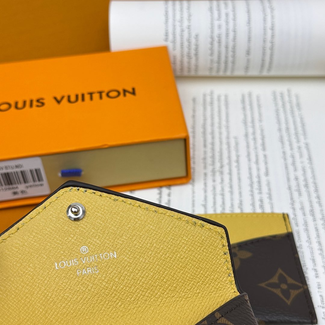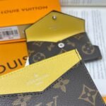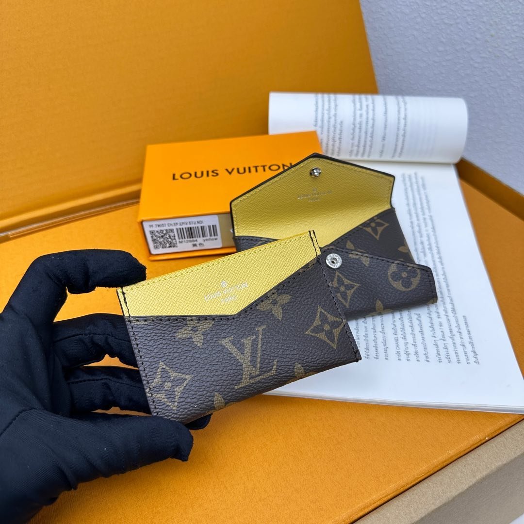 M12884 This card holder renews the envelope-style configuration of the original Kirigami Pochette Ms clutch bag, adding a new idea to the Colormania collection. The Monogram canvas combines a bright leather lining and a glossy snap-on, and the 2-in-1 compartment can be removed for use alone.