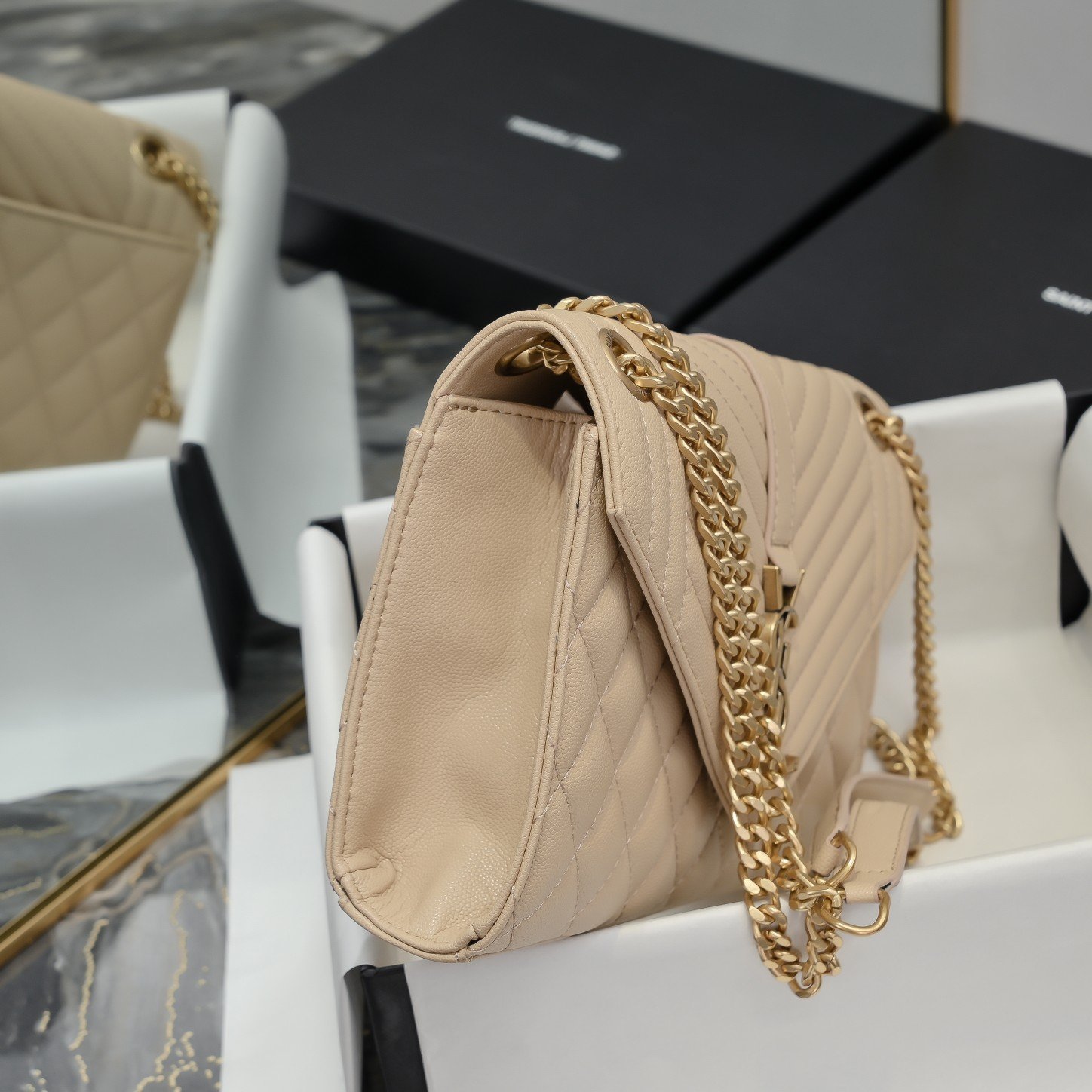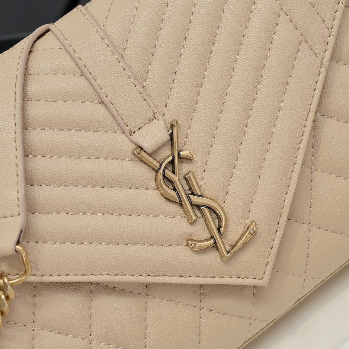 Medium Envelope#Apricot Gold Buckle. Medium grained embossed quilted genuine leather envelope bag. Classic is eternal. The V-pattern combined with rhombus pattern of caviar texture is extremely beautiful. Italian cowhide with eye-catching Y family logo, integrating elegance and fashion! One chain with three ways to carry: single chain for crossbody, double chains for single shoulder carry, and single chain for single shoulder carry are all perfect. For fairies of different heights, there is always a carrying method suitable for you. Oh no, it’s the feeling of love at first sight. Model: 48722. Size: 24×17.5x6cm.