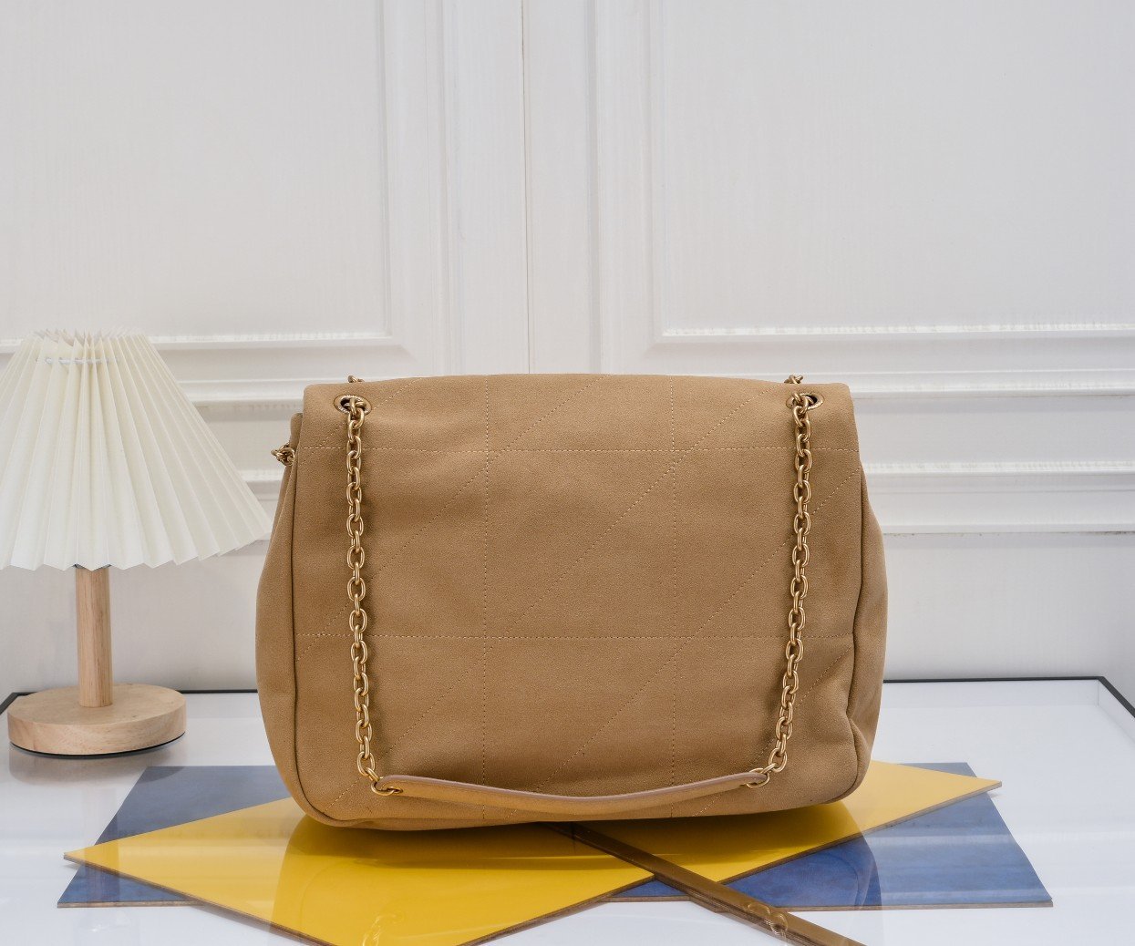 Large size. The latest YSL model, JAMIE in lambskin. The soft leather is matched with a matte frosted metal shoulder strap and two sections of lambskin. The capacity is extremely large. The bag shape is designed in a classic retro distressed version. It is very beautiful and fashionable, versatile for commuting, unexpectedly lightweight, and highly practical! It can be carried by hand, on one shoulder or crossbody with multiple carrying methods! An absolute must-have item! Size: 43×29×9 cm. Code.