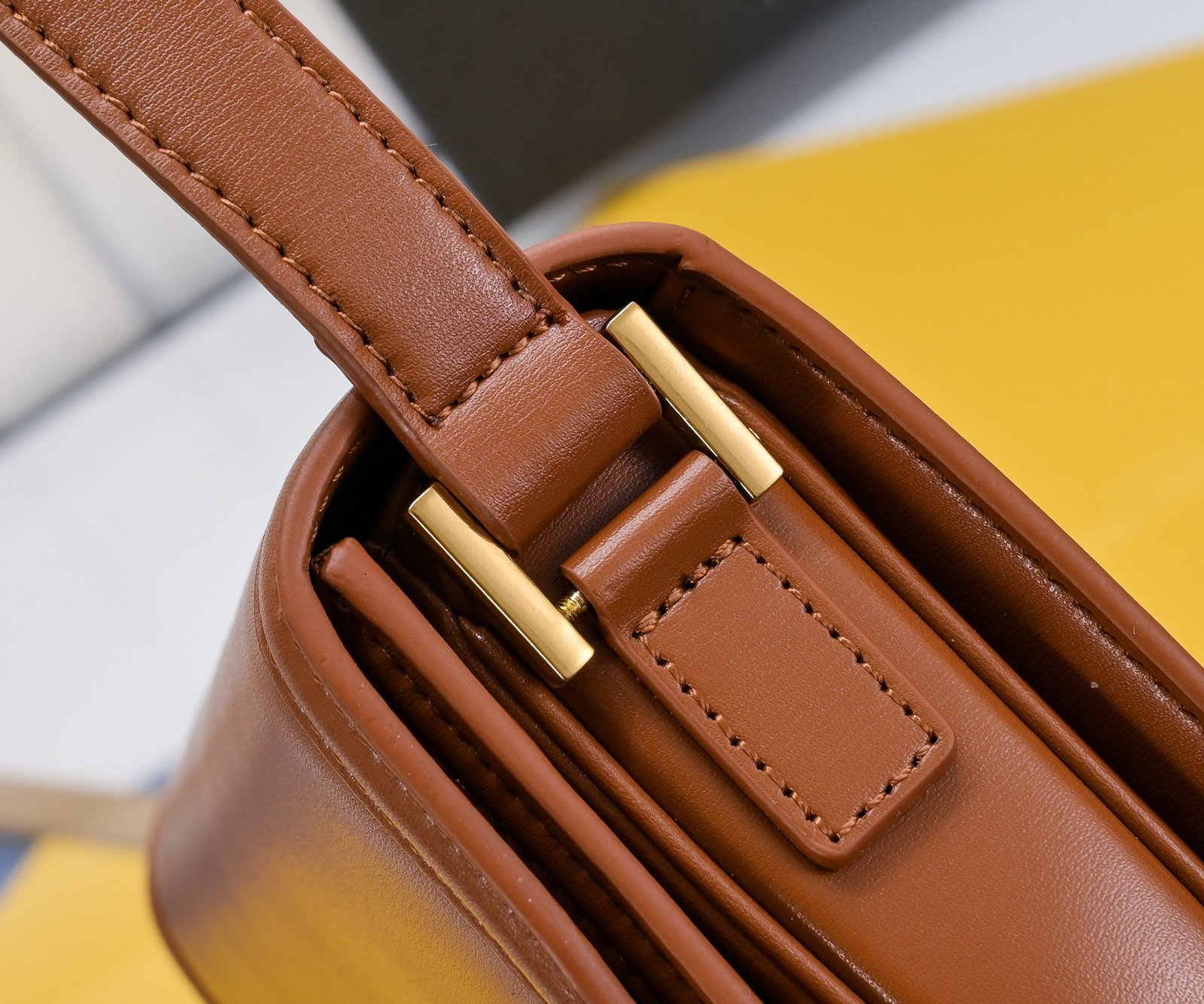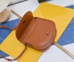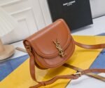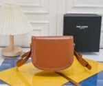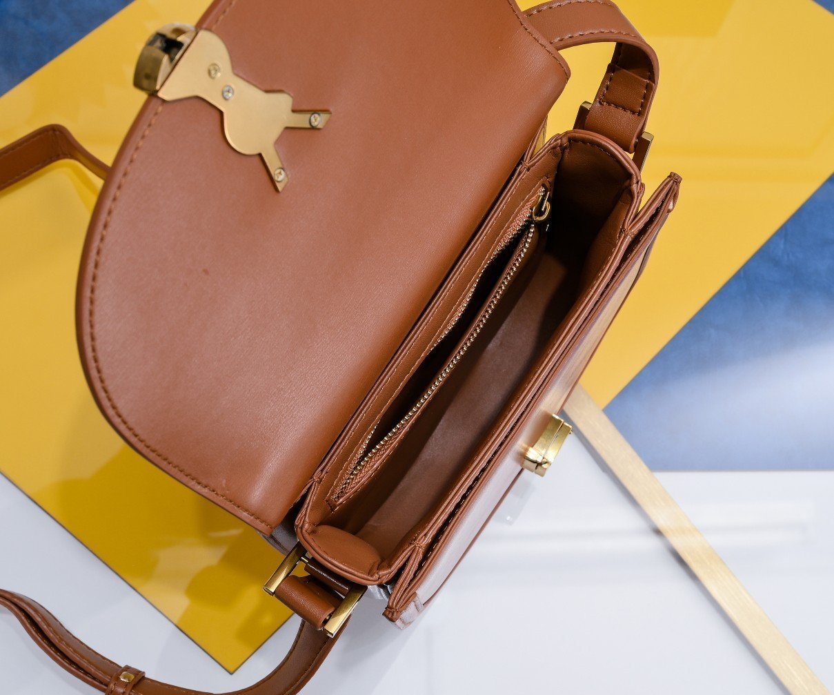 YSL new saddle bag with box. Cowhide leather. Can be slung diagonally or carried on the shoulder. With 3 inner compartments, inner zipper pocket and flat pocket. Original factory leather. Original factory hardware. Shiny retro buckle. Model number: 202326 brown with gold hardware. Size: 19×16×6 cm.
