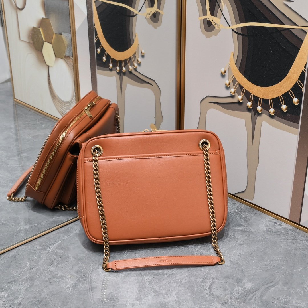 Italian custom vegetable tanned leather with gold chain, timeless matching, front flip and zipper opening and closing design, the visual impact is instantly full! The camera bag is super practical, and the size of daily travel is completely sufficient