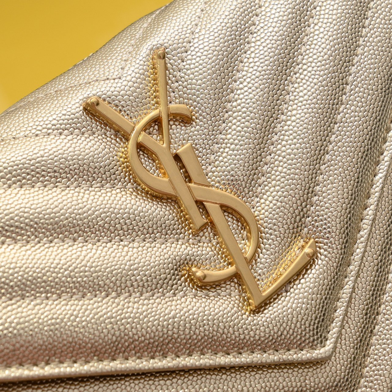 [New arrival] Saint Laurent small envelope bag. The latest caviar texture with custom hardware. An extremely practical small bag! The shoulder strap can be removed and used directly as a clutch. Made of imported cowhide leather, with exquisite craftsmanship and top-notch Taiwanese hardware. Model: 688918 apricot color with gold buckle!!! Size: 19*11.5*4 cm!