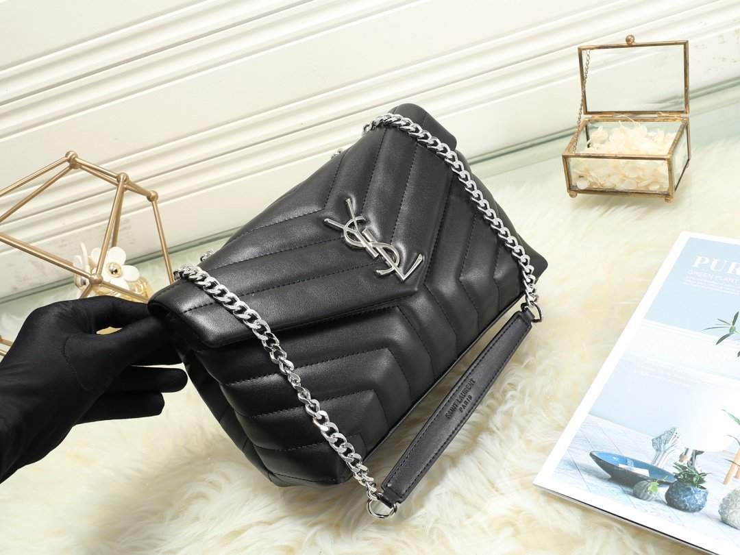 Popular calfskin Loulou medium-sized genuine leather shoulder bag from Saintarent. Design details: shoulder strap with multiple wearing methods, flap decorated with snap buttons, envelope style, embossed flower print, silver hardware, YSL logo lock, shoulder strap pendant: 57 cm! Model number 5312#!!! Silver buckle size: 25x18x10cm.